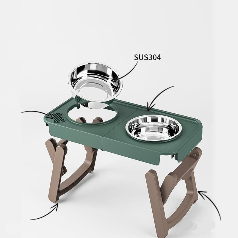 Folding Bowl For Eating High Feet For Pets Bowl With Non-slip Support  Stainless Steel For Drinking Water For Dogs